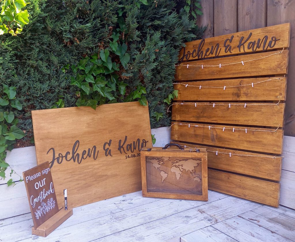 Ons kader is gemaakt van hout en glas en kan gepersonaliseerd worden met jullie namen en datum. Verkrijgbaar in twee formaten:
